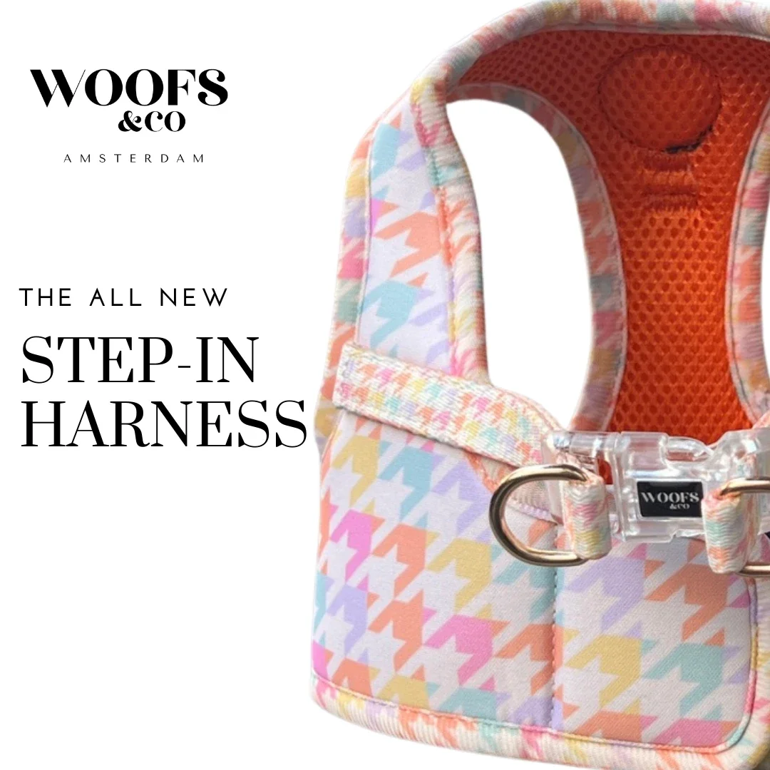 Give your dog a timeless, stylish look with our Step-in Harness in Houndstooth Beige. Designed for comfort, convenience, and everyday wear, this harness combines a classic pattern with a practical step-in fit — perfect for dogs who don’t like harnesses that go over the head.